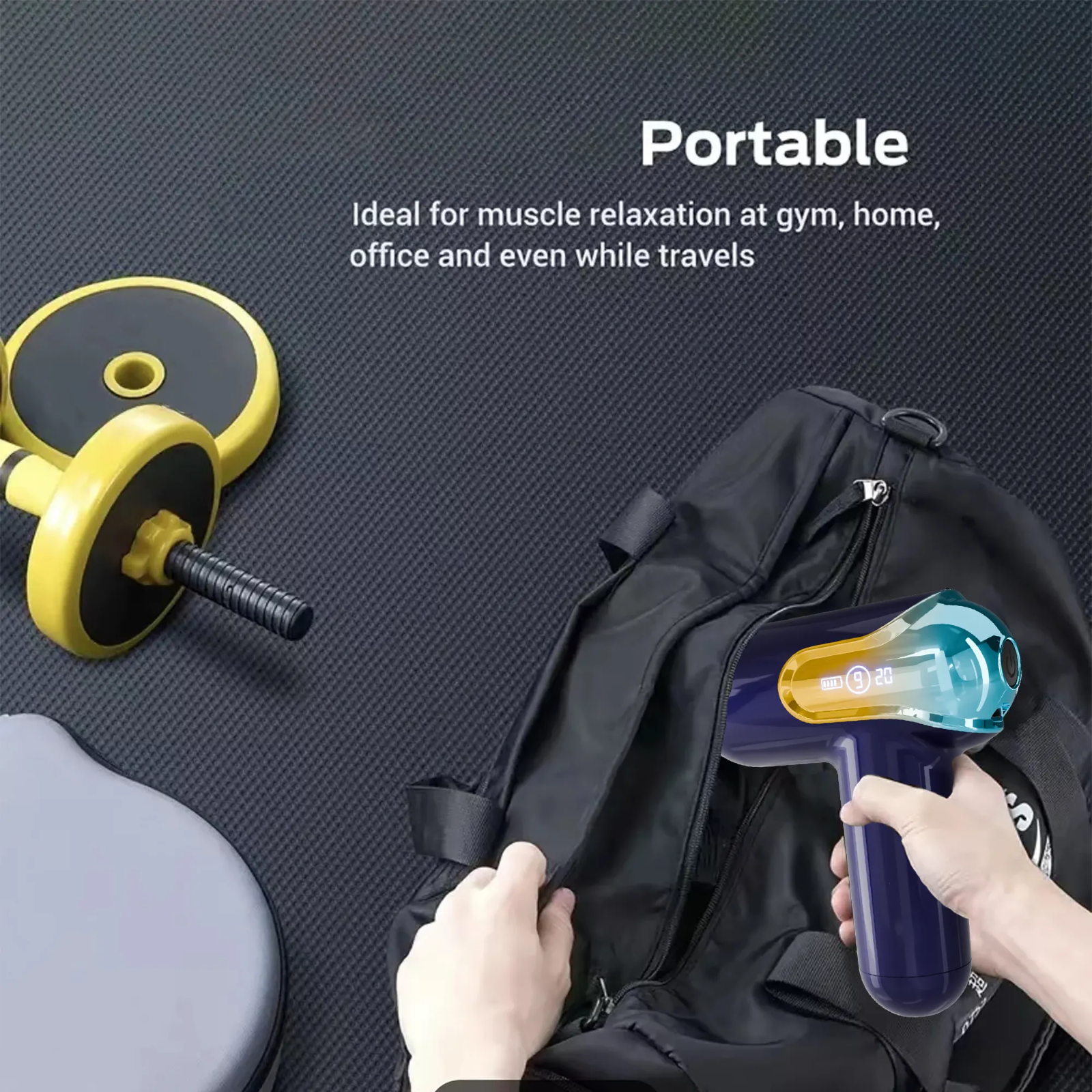 Yes, the massage gun is designed to be lightweight, compact, and easy to carry, so you can use it at home, in the gym, office, or while traveling.